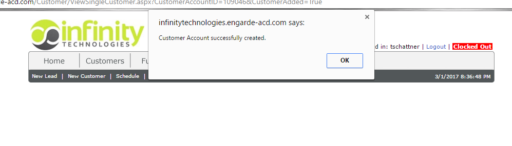 On Engarde you will enter all customer information from the SOP (schedule of protection) and AMA (alarm monitoring agreement). The KEY information from both forms will be the billing info and the abort code/password. First, you will want to click on "New Customer" from here you will enter all information from the contract into the system. Make sure you pay CLOSE attention to the billing and abort code. You will enter all *starred information that is required. In address information enter it as follows: