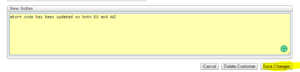 Then you will hit save.  Once the abort code has been updated in both places go back to Engard and put a note that it has been updated on both EG (engarde) an AG (Avantguard) and hit save changes:
